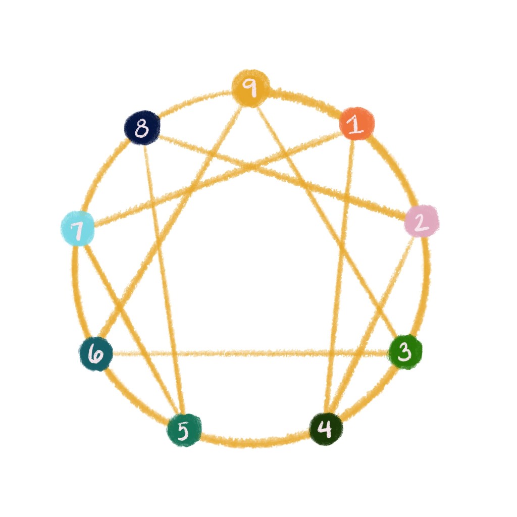 The Ennea-what? I know, it’s a strange name at first. Ennea is Greek for 9 and gram means drawing, so we have a “nine drawing”. It’s a circle with 9 numbered points and each number represents a distinct personality or type. The circle itself and the lines connecting the numbers illustrate the interconnectedness between the different styles.